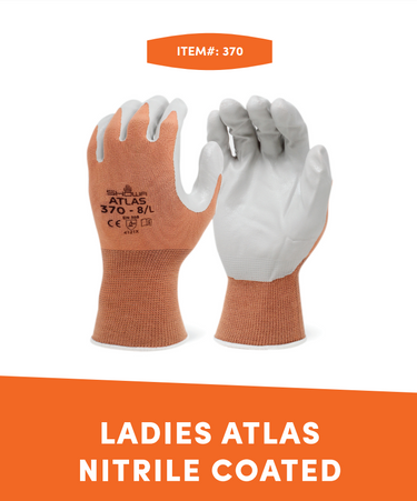 Atlas Nitrile 350 is a durable flat-dipped dark green colored Nitrile coated work glove features exceptional grip, dexterity and durability with oil resistant Nitrile coating. The cotton/polyester lining provides extremely comfortable fit. The lightweight but durable Nitrile coating provides outstanding grip. An elastic knit-wrist secures the glove above the wrist for comfort and preventing debris from entering the work glove.