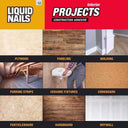 The original Liquid Nails adhesive, this versatile construction adhesive has proven effective at bonding all common building materials. It bridges gaps up to 3/8 inch, remains waterproof yet flexible and offers up to 10 minutes working time.