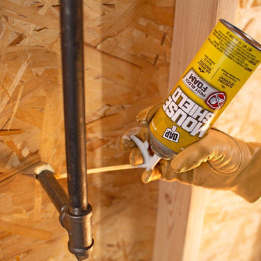 Mouse Shield contains an EPA-registered pesticide that protects the foam from attack by mice, birds, bats and tree squirrels. It also blocks ants, roaches, spiders and bees. Use Mouse Shield to fill gaps and cracks inside your garage, attic, crawl space, basement, under sinks, around pipe/electrical penetrations or any areas where pests, insects or drafts can enter your home and living spaces.