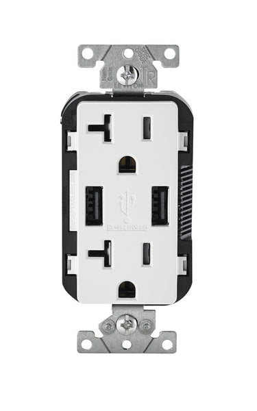 Leviton Decora 20 amps 125 V Duplex White Outlet and USB Charger 5-20R 1 pk