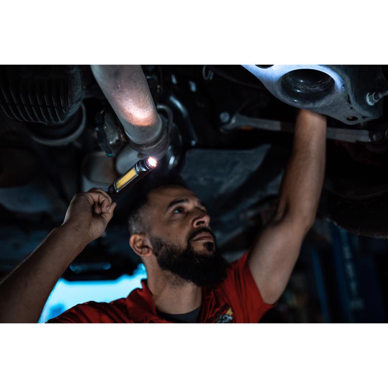 Big Larry is back and brighter than ever. The new and improved Big Larry outputs 600 lumens with the COB work light and 220 lumens from the top light. The red COB light is perfect for distress signaling or roadside emergencies. The steel clip and magnetic base provide convenient hands-free lighting options.