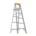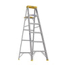 The 356 aluminum 6 feet step ladder has a duty rating of 225 lbs. and Tool-Tra-Top that feature a convenient tray for holding tools or a paint can and slots for a paint roller tray. There is also a sturdy molded paint can hanger on the back of the top. The automatic Spill-Proof pail shelf opens and closes with the ladder. The Traction-Tred steps are slip resistant.