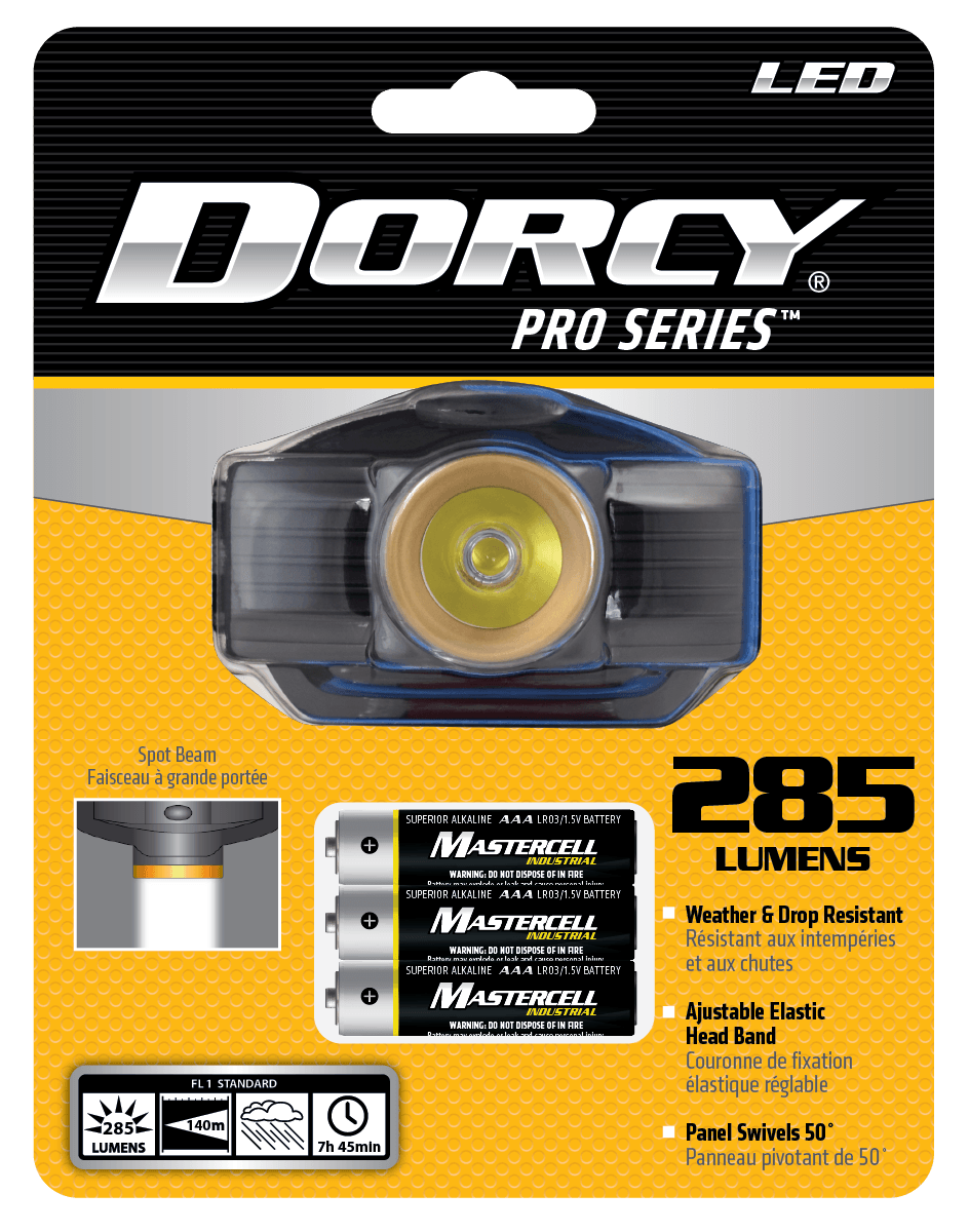 The Dorcy Pro Series 285 Lumen LED Headlamp, a feature-rich and lightweight headlight that packs a punch. Despite its compact size, this headlamp delivers an impressive 285 lumens of bright light output in a focused spot beam. With an extended runtime of 7 hours and 45 minutes, a remarkable beam distance of 140 meters, and three adjustable brightness modes (full power, half power, and strobe), this headlamp is your ultimate tool for a wide range of tasks.