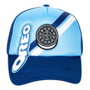 Show your love for your favorite cookies and cream combo in the Odd Sox Oreo trucker hat for men and women. The blue hat has the Oreo logo in fuzzy knitted material with a cookie at the center. Each hat is constructed with highly durable cotton with an adjustable snap closure and mesh backing to allow ventilation.