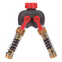 The Flexible 2 way shut off allows two hoses to be attached to one faucet. The incorporated hose saver connections resist hose crimping that stalls water flow and