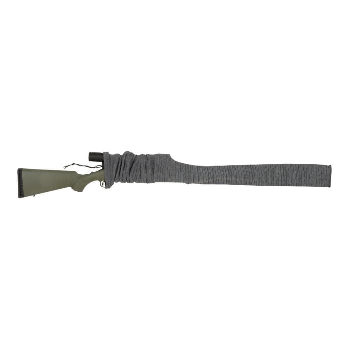 This 52-inch (132cm) in length, firearm sock by Allen is made from a Heather gray colored knit fabric. The firearm sock was designed to protect most shotguns and rifles with or without optics. A limited silicone treatment for short-term protection helps guard against rust, pitting, corrosion, and dust. It is also great for preventing dings and scratches in storage or in transit. The cinch closure will keep it secured around your firearm.