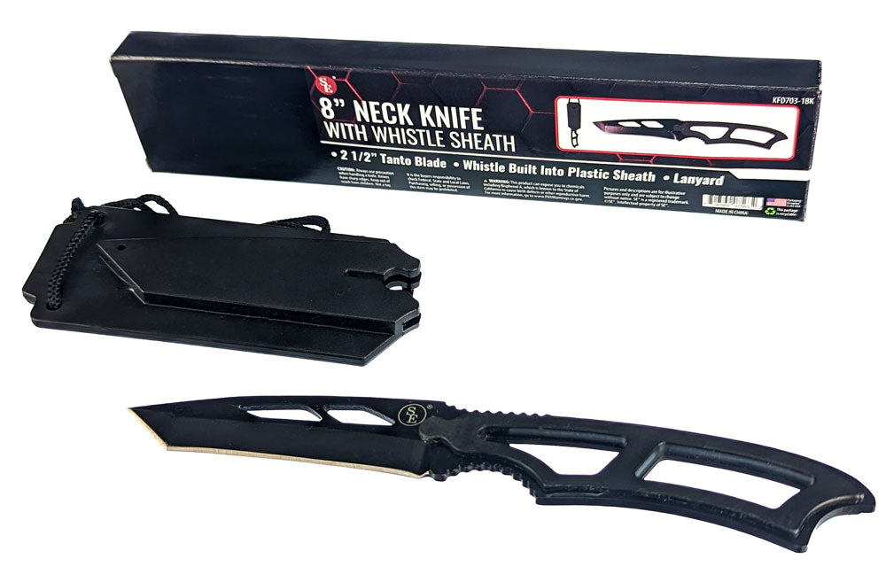 Sona Enterprises 8" Neck Knife with Whistle Sheath and Lanyard