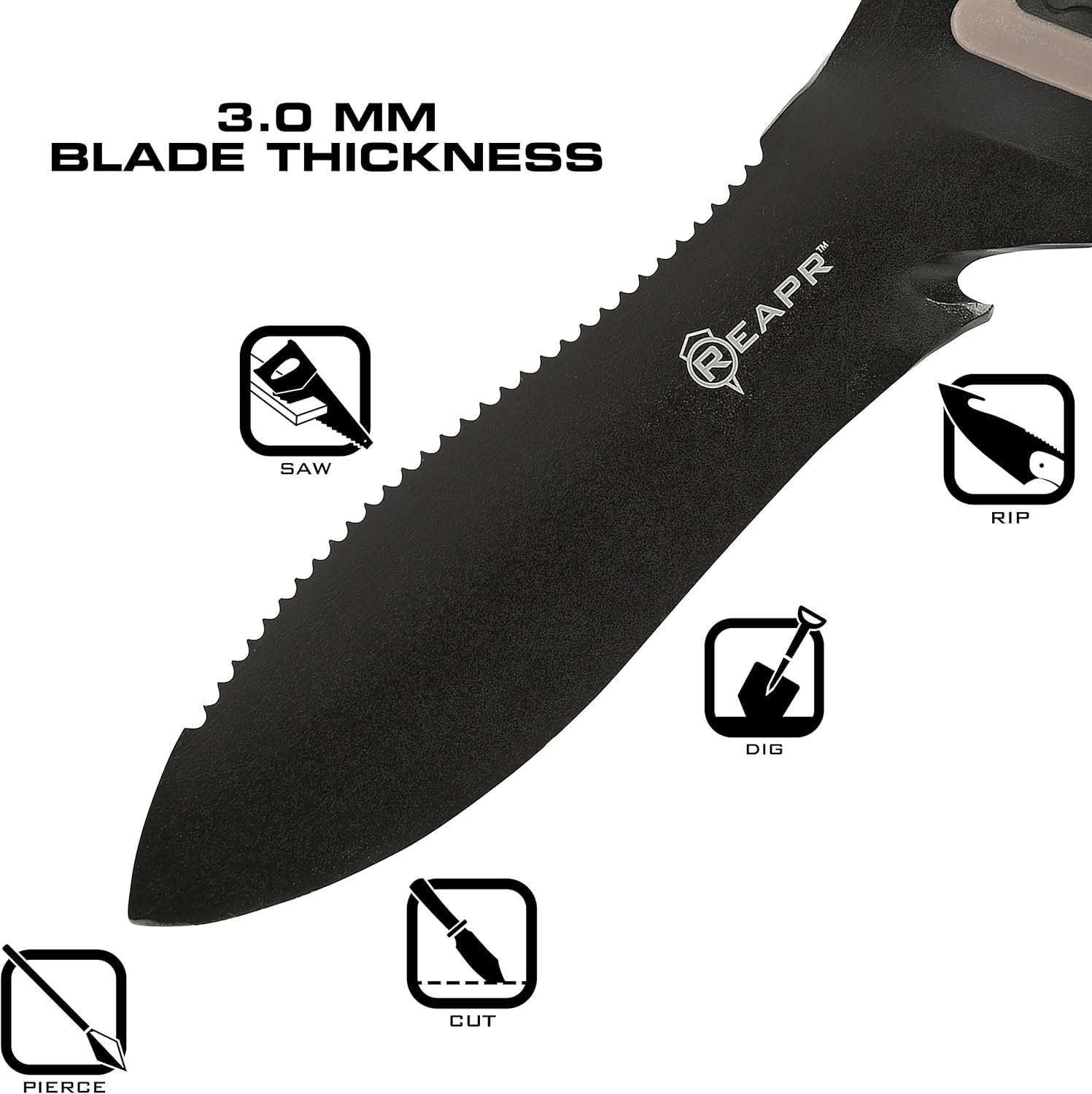 - 6.5" Dual-Side Blade: Straight edge for cutting and digging, and serrated edge for sawing and tough tasks.