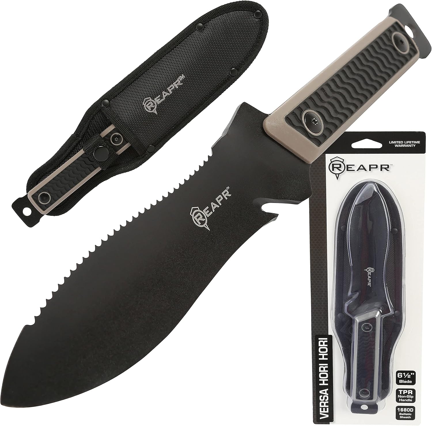 The Reapr Versa Hori Hori Knife (11017) is a versatile and durable multipurpose tool designed for gardening, camping, and outdoor tasks. Featuring a 6.5" dual-side blade, this knife offers a straight edge on one side and a serrated edge on the other, providing versatility for cutting, digging, sawing, and more. The heavy-duty construction ensures durability, while the included nylon sheath offers safe and convenient storage. Whether you’re planting, weeding, or working on outdoor projects, the Reapr Versa Hori Hori Knife is the ultimate tool for tackling tough jobs with ease.