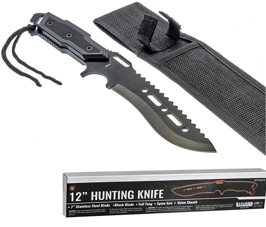 Sona Enterprises 12" Stainless Steel Full Tang Black Serrated Blade Hunting Knife