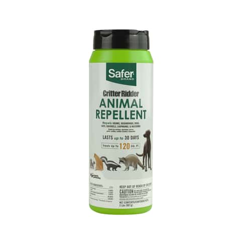 The Safer® Brand Critter Ridder® Granules protect your lawn and flowerbeds from wildlife and stray pets. This treatment harmlessly repels animals from your yard in two ways: First, it overwhelms their sense of smell and then it assaults their sense of taste. Thanks to its highly potent active ingredients, Critter Ridder® is fast acting and animals quickly learn to avoid the area – they won’t want to experience those sensations again! Use Critter Ridder® against raccoons, groundhogs, cats and dogs. The granules in this 2 lb container offer 30 days of critter protection.