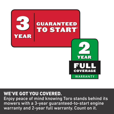 • Optional Side Discharge Chute not Included in the box. The free discharge chute for walk behind mowers can be requested at time of registration at Toro.com/register
