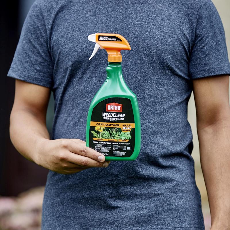 Ortho WeedClear Lawn Weed Killer Ready-to-Use kills all types of weeds (as listed) without harming your lawn (when used as directed). The formula is rainproof in 1 hour and is fast-acting-you'll see results in just one application. It kills over 200 weeds down to the roots, including dandelion, chickweed, clover, crabgrass and foxtail. Easily apply to weeds with the trigger sprayer. For use on grasses, including Bermudagrass, Buffalograss, Fescues, Kentucky Bluegrass, Ryegrass and Zoysiagrass. Use Ortho WeedClear Lawn Weed Killer to kill weeds to the roots.
