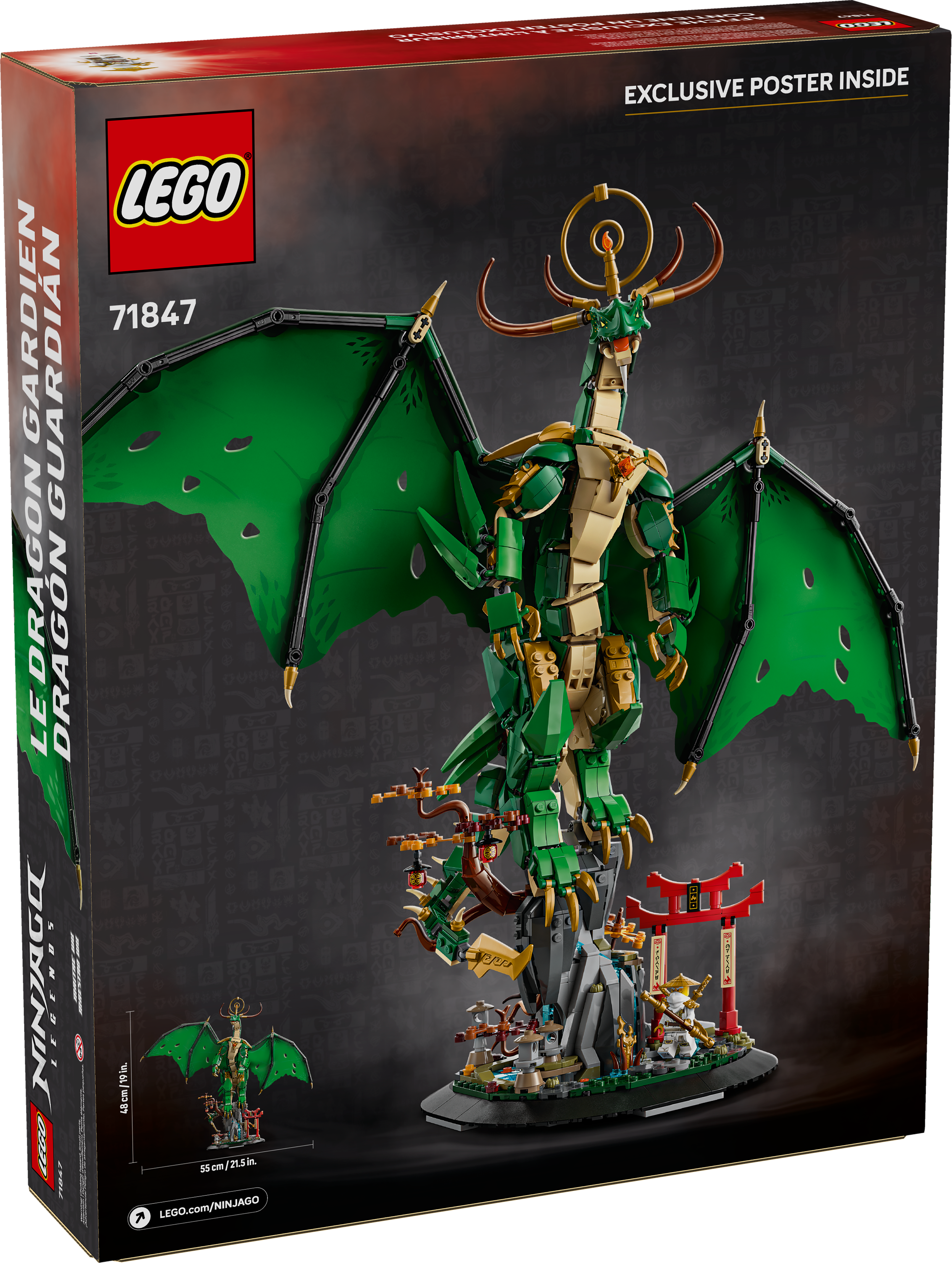 - NINJAGO® dragon model – Older NINJAGO fans can add to their collection of LEGO® NINJAGO models with The Guardian Dragon display building kit