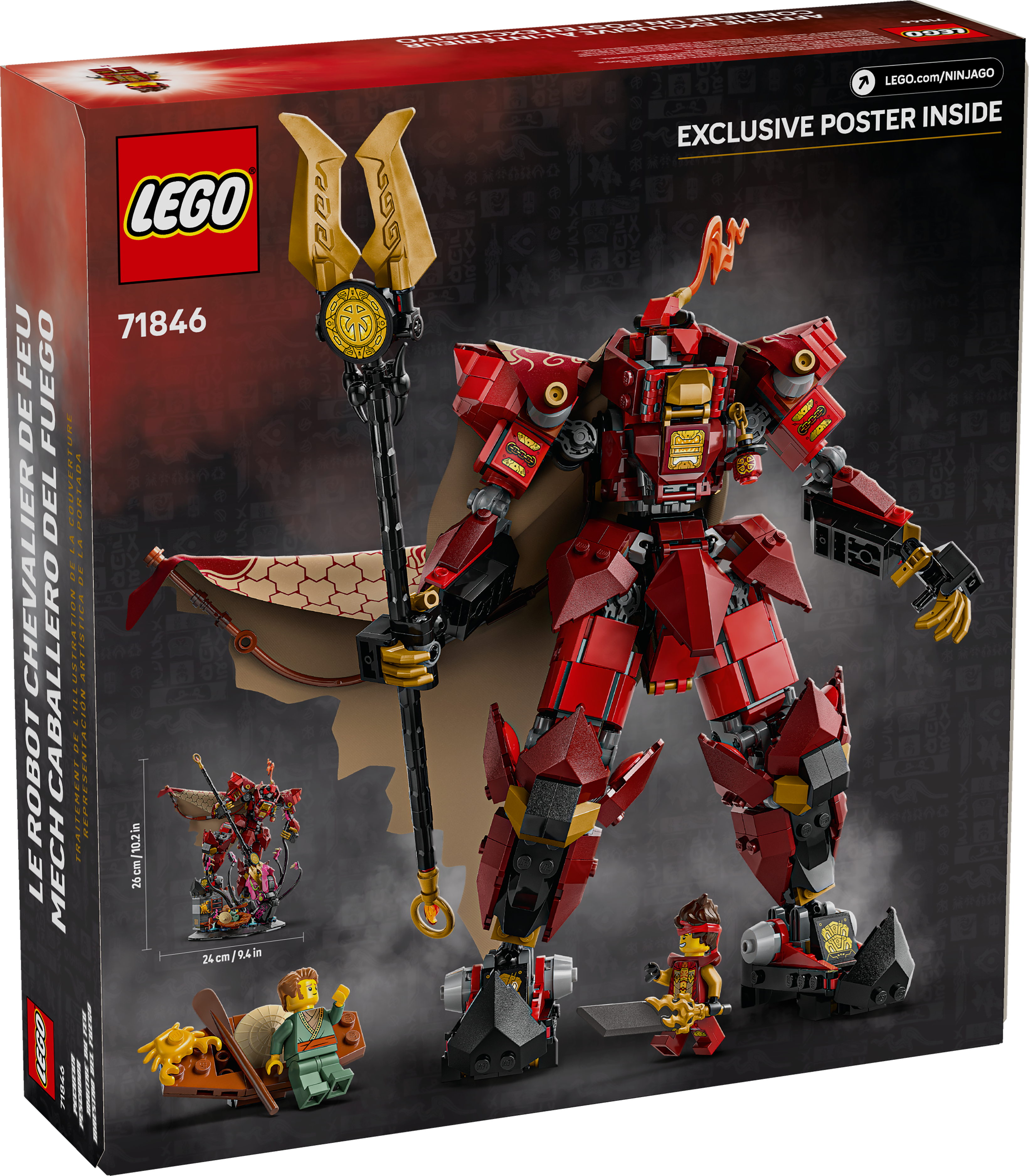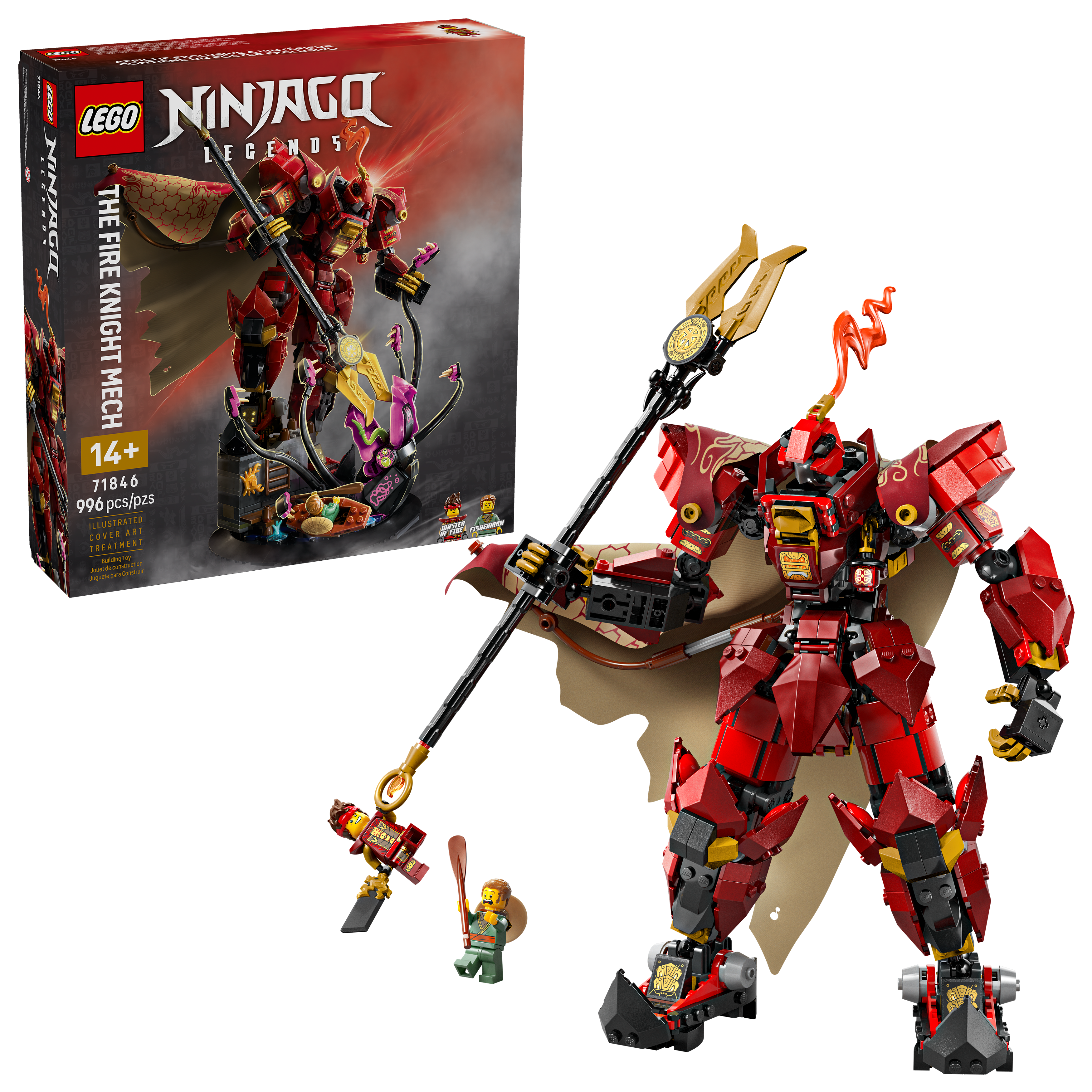 Older NINJAGO® fans aged 14 and up can add to their collection of LEGO® NINJAGO models with this stunning and highly detailed The Fire Knight Mech (71846) building kit. It features a dramatic scene of a cape-wearing, spear-holding mech locked in battle with an ancient monster emerging from the sea, and it will look great on display in a bedroom. Ninja fans can also remove the model from its base to recreate stories from the NINJAGO Legends Monstrosity series. The mech has posable features and the sea monster has movable tentacles. The model also comes with 2 NINJAGO minifigures: Kai with a magical sword, who can be placed inside the mech’s chest, and a fisherman with a paddle in a boat. The rest of the LEGO NINJAGO range of sets (sold separately) includes dragons, vehicles and temples for fans to role-play adventures with their heroes. Each ninja playset can be created with the LEGO Builder app, which guides you on an easy and intuitive building adventure. Set contains 996 pieces.