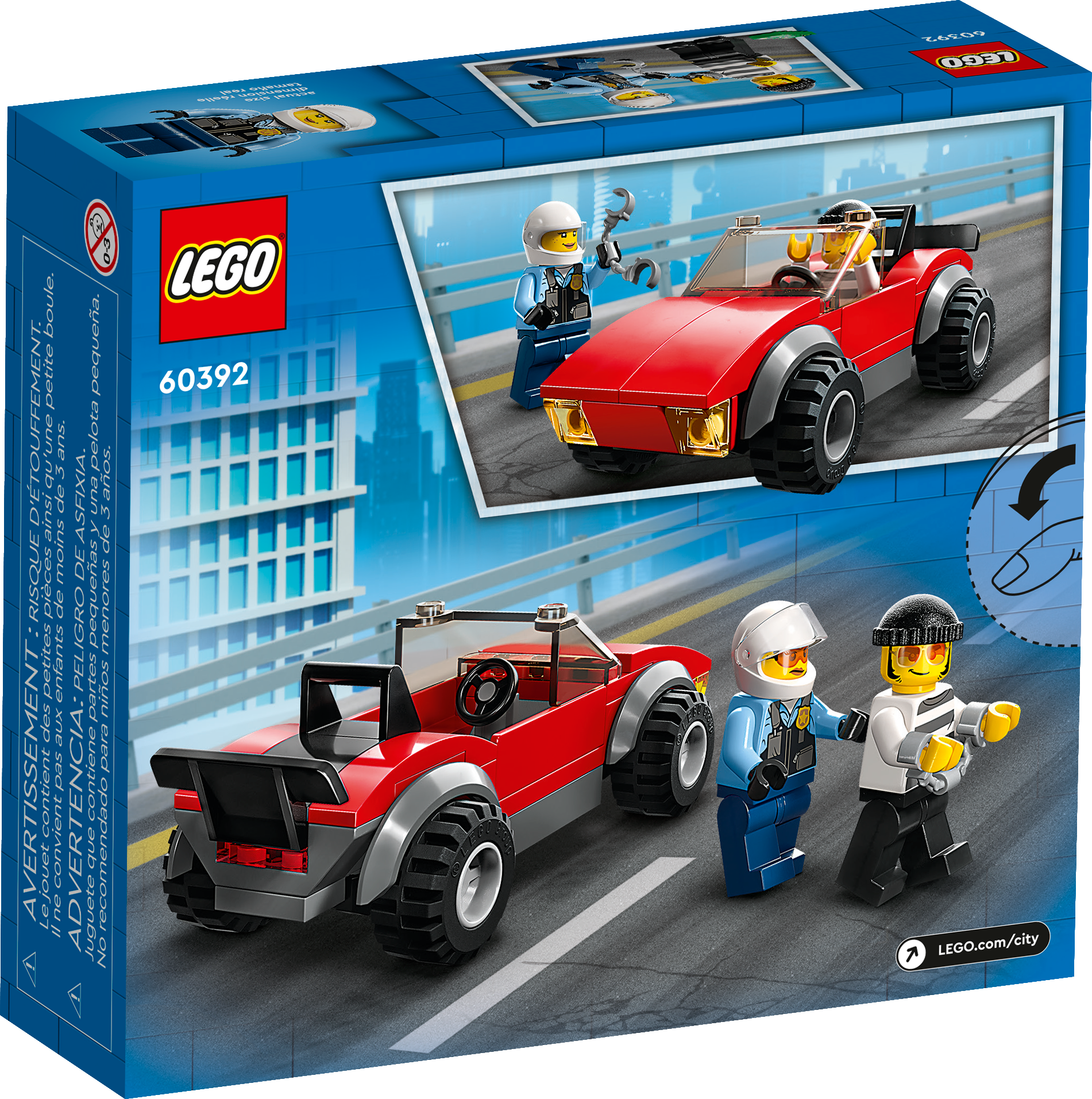 - Police chase toy for kids aged 5 and up – Hours of fun crook-catching adventures await with this LEGO® City Police Bike Car Chase (60392) playset