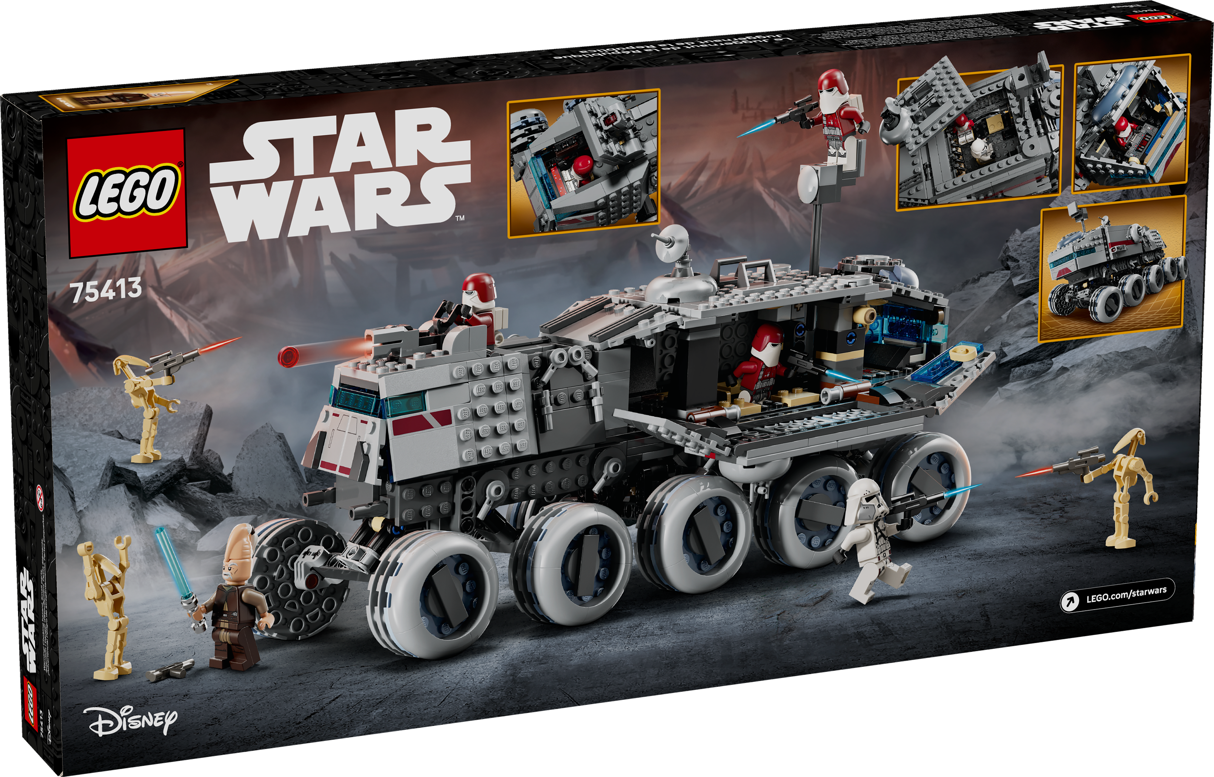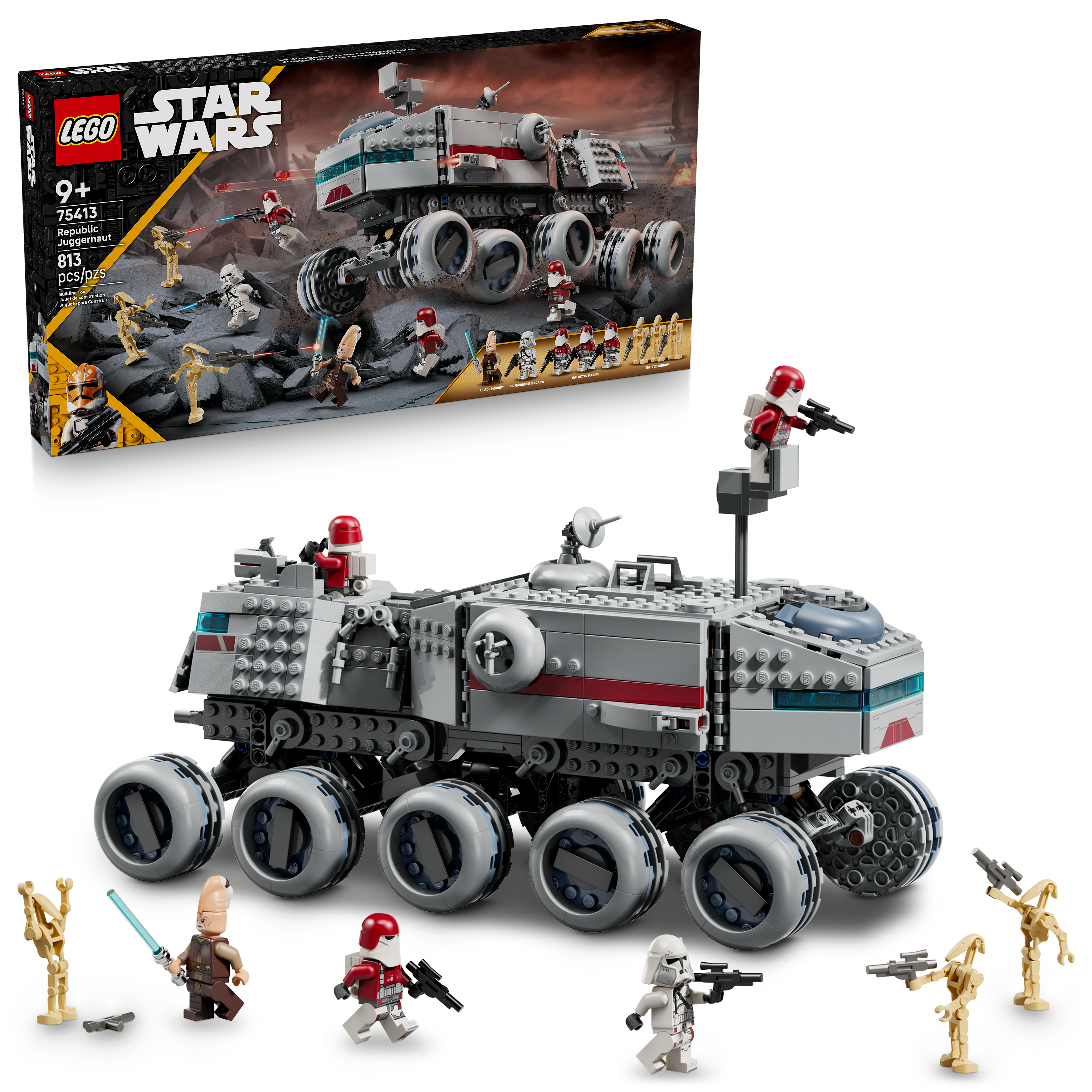 Let kids lead their own heroic Star Wars: The Clone Wars™ battle missions with the Republic Juggernaut buildable transport vehicle toy (75413). A cool LEGO® Star Wars™ gift for boys, girls and fans aged 9 and up, this impressive 10-wheeler is steered by simply tilting the model as you move it, and it has easy access to the detailed interior.