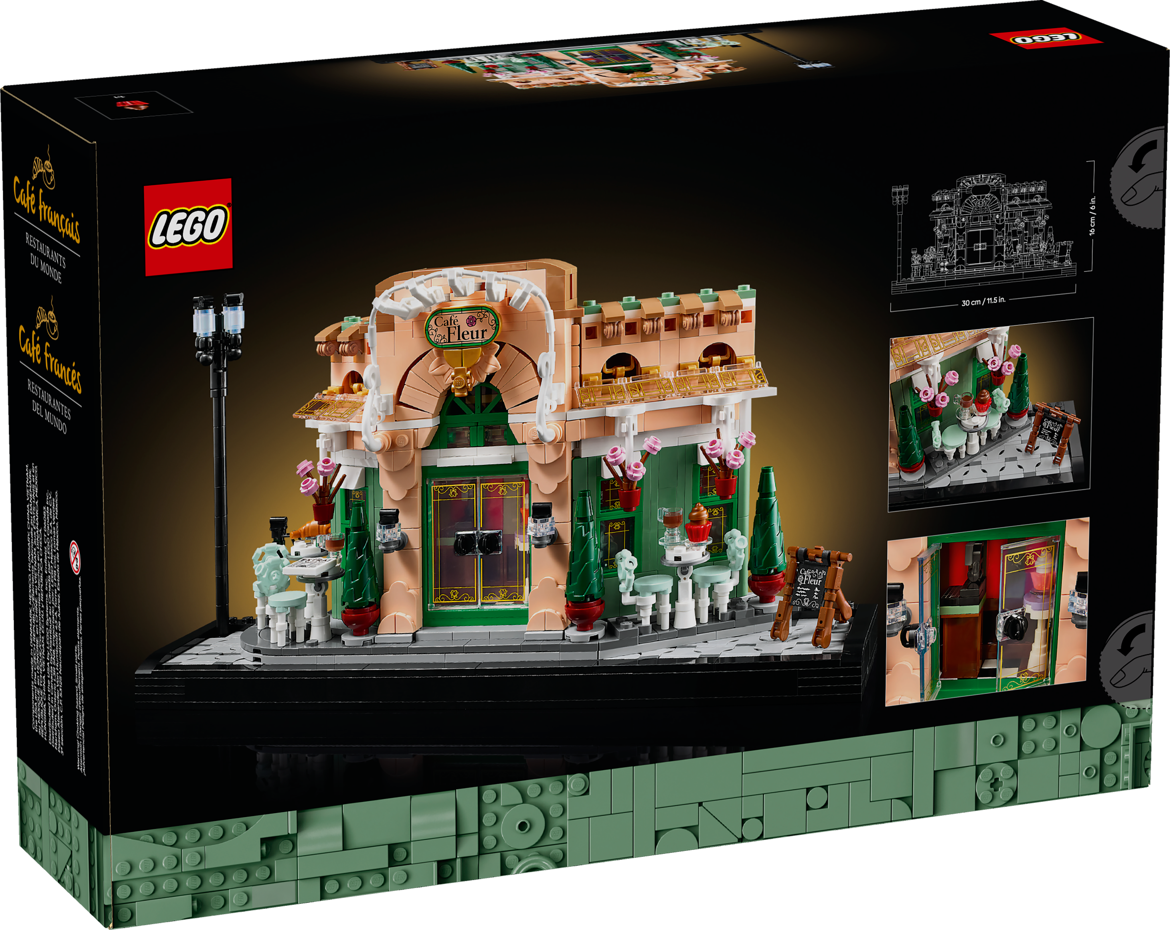 • Dimensions – The French Café building in this 1,101-piece construction set measures over 6.5 in. (16 cm) high, 12 in. (30 cm) wide and 2.5 in. (6 cm) deep