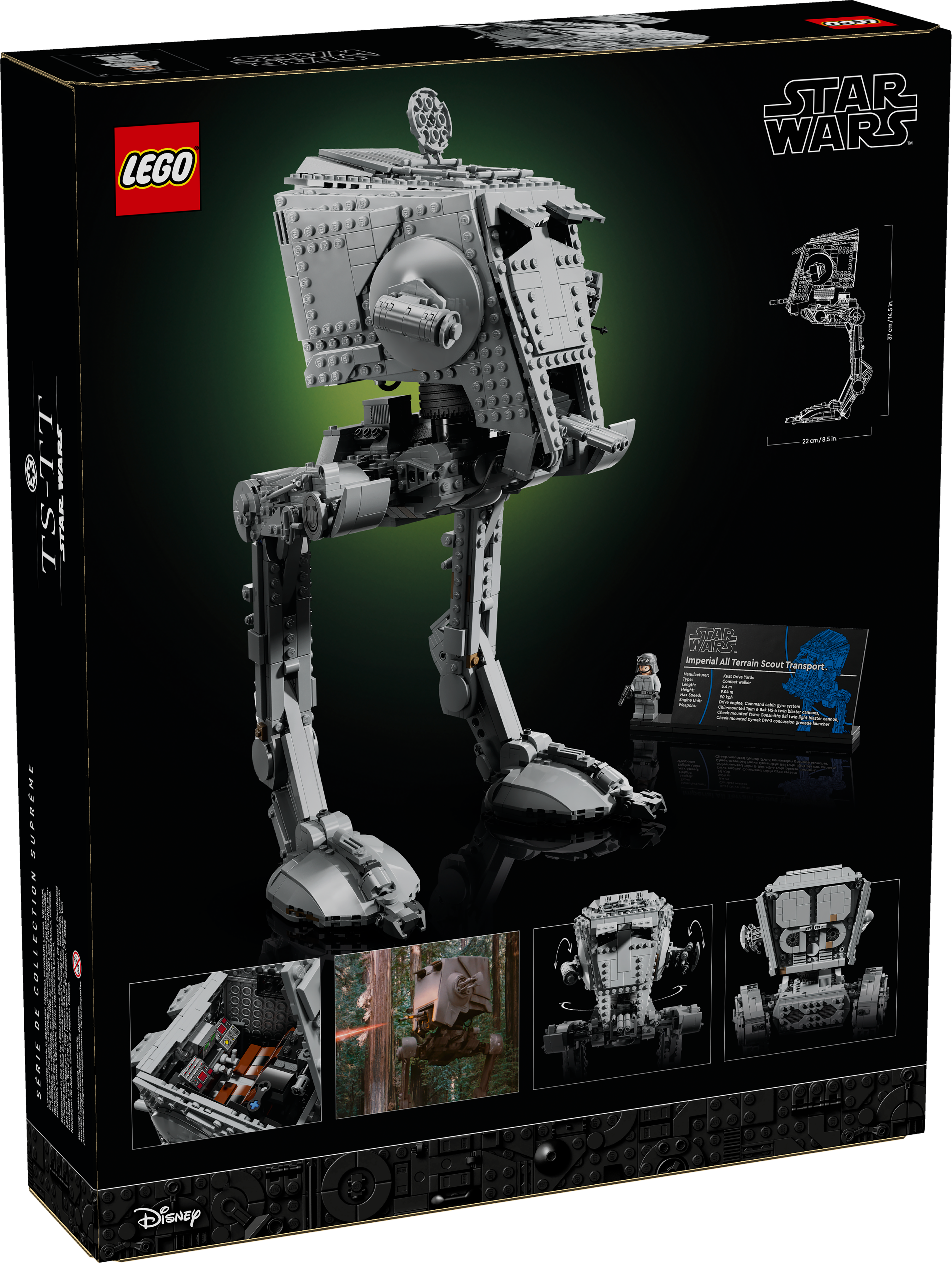 This collectible brick-built vehicle comes with an information plaque and a unique LEGO Star Wars minifigure of an AT-ST Driver (with the Imperial crest printed on its arms) to complete a dramatic centerpiece.
