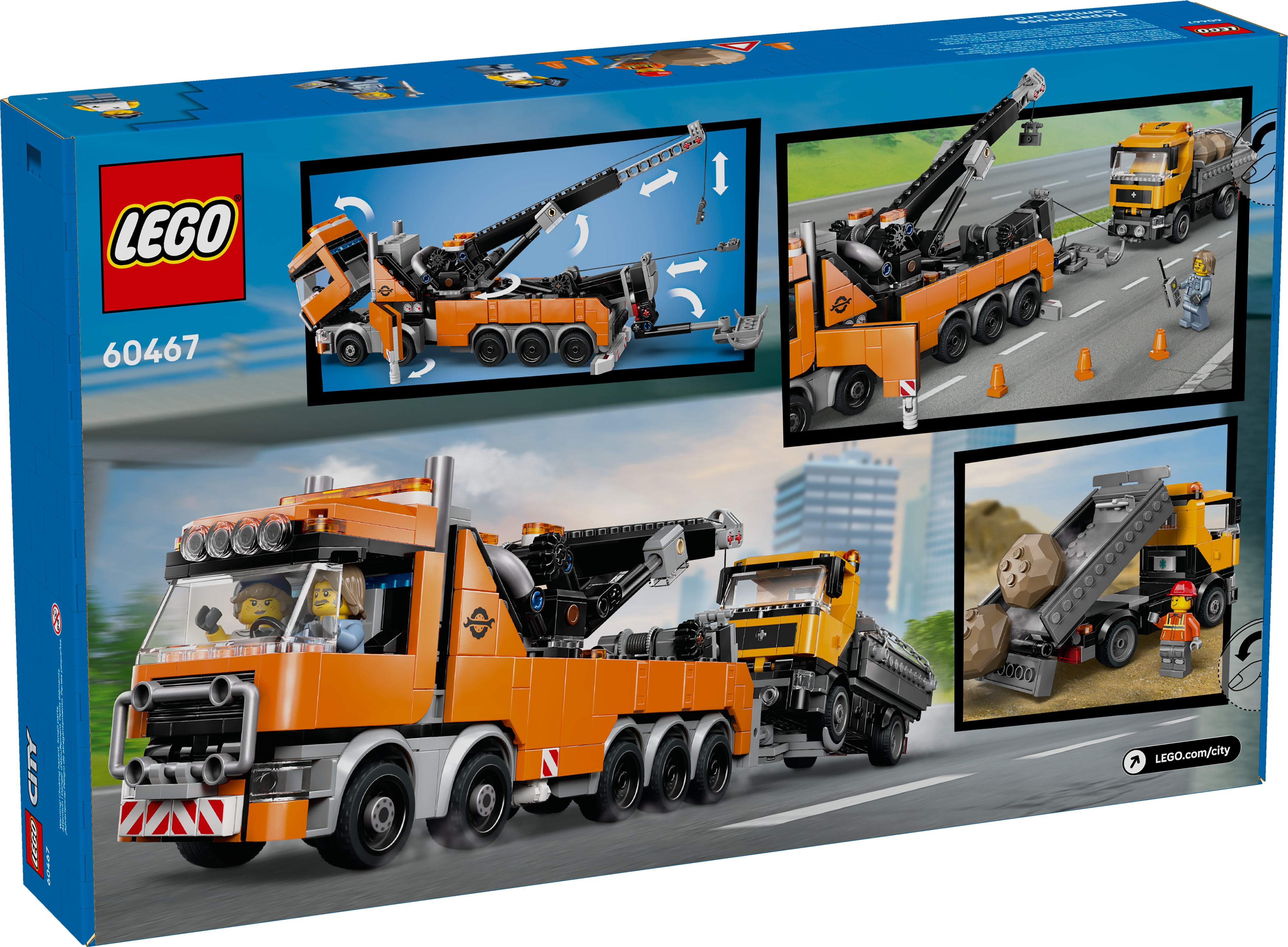 Fans of toy vehicles and pretend play will love this double-feature LEGO® City Heavy-Duty Recovery Tow Truck with Crane (60467) playset for ages 8 and up. The toy rotator tow truck comes with a working crane, stabilizing outriggers and an underlift with a winch to load vehicles for towing. Kids also get a functioning dump truck with a cargo of 2 huge boulders, and the set comes with 3 LEGO minifigures for exciting vehicle rescue adventures. This toy truck playset includes a step-by-step printed construction guide and digital instructions in the LEGO Builder app. Here, kids can zoom in and rotate models in 3D, save sets and track their progress as they build. LEGO City Great Vehicles playsets deliver feature-rich land, air and water toys for imaginative play without limits. Kids can add this recovery vehicle playset to other sets (sold separately) from the LEGO City range to expand their world of play. Set contains 793 pieces.