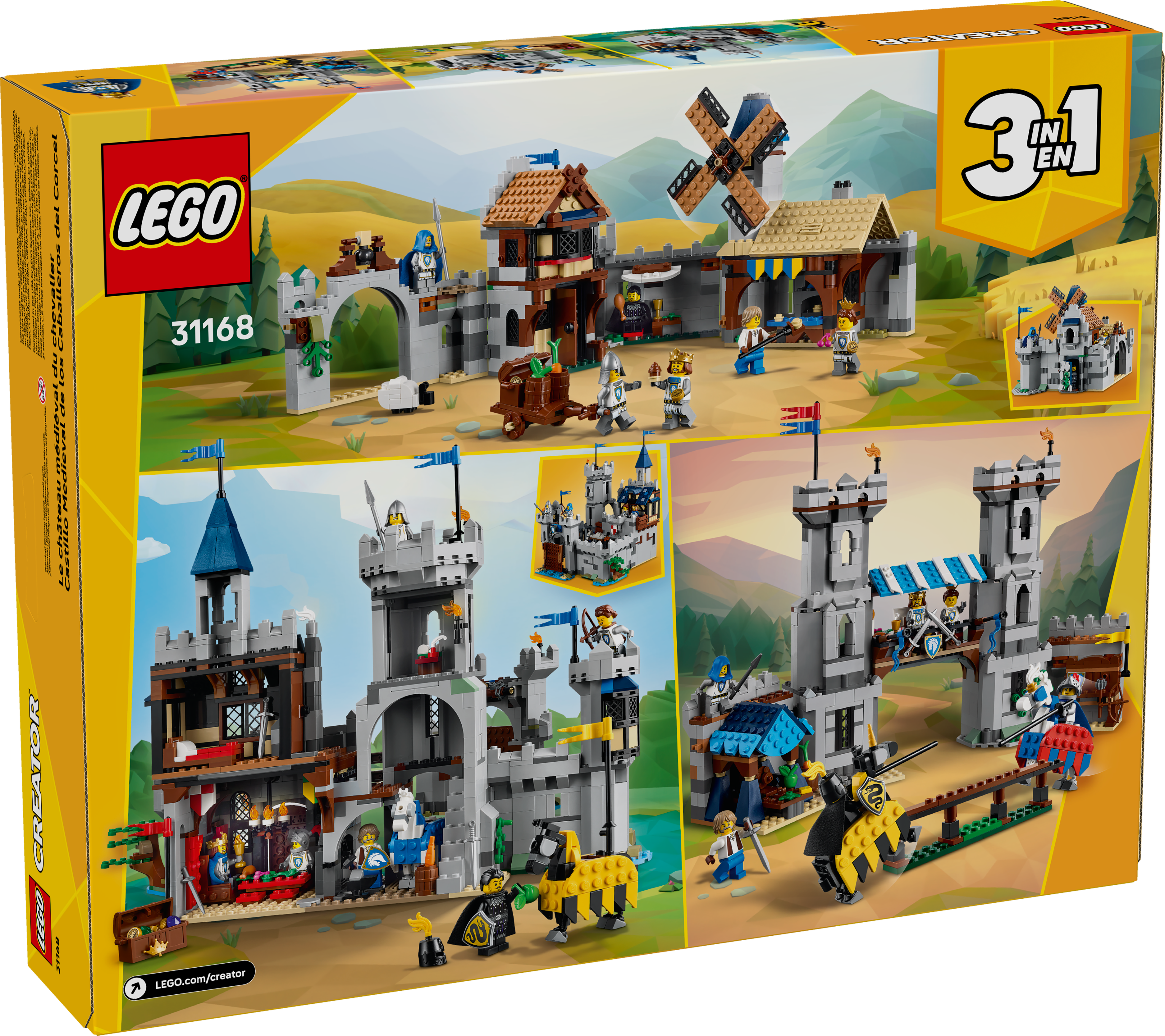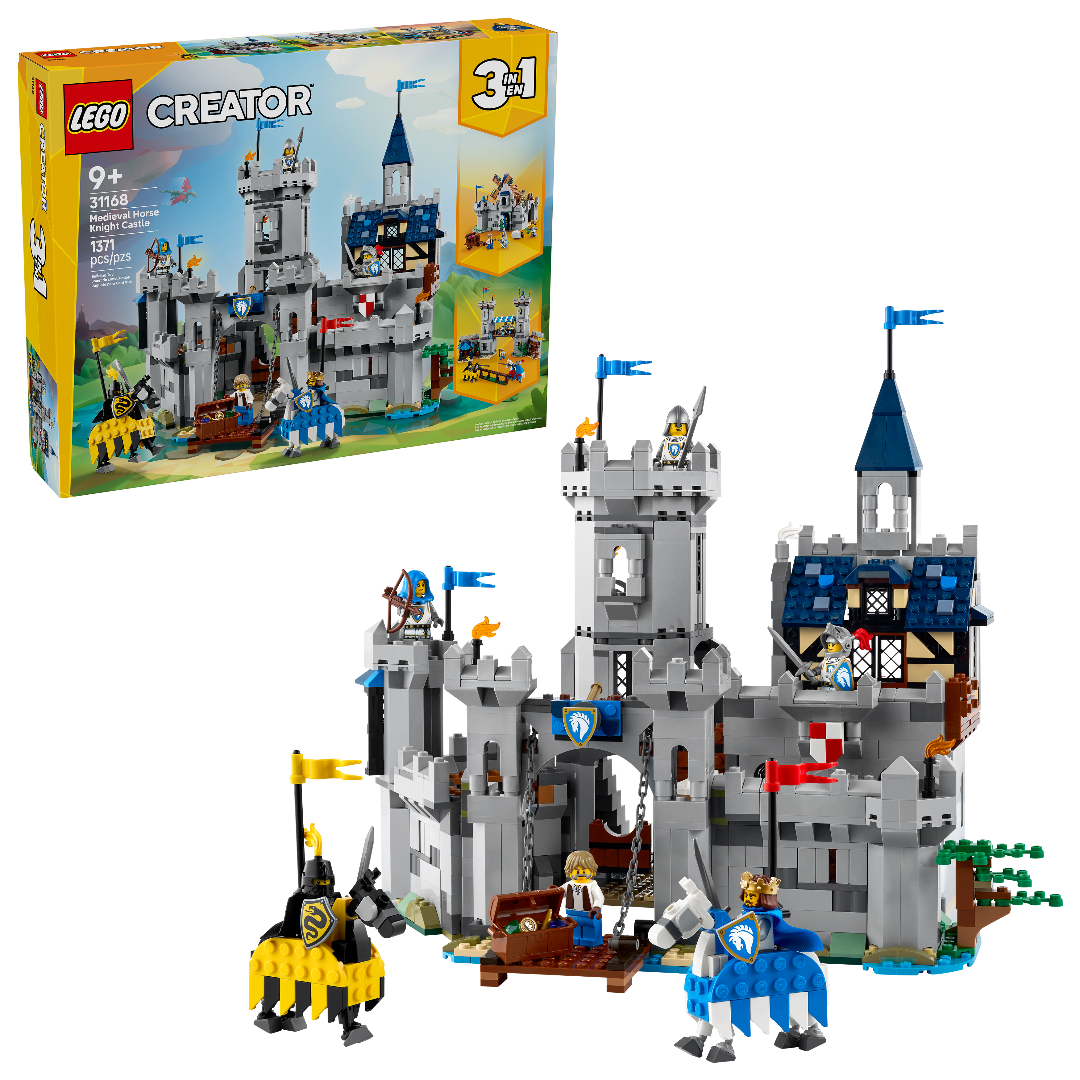 • 3 medieval toy building options in 1 box – The LEGO® Creator 3in1 Medieval Horse Knight Castle playset building toy lets kids build and rebuild 3 different detailed models using the same bricks