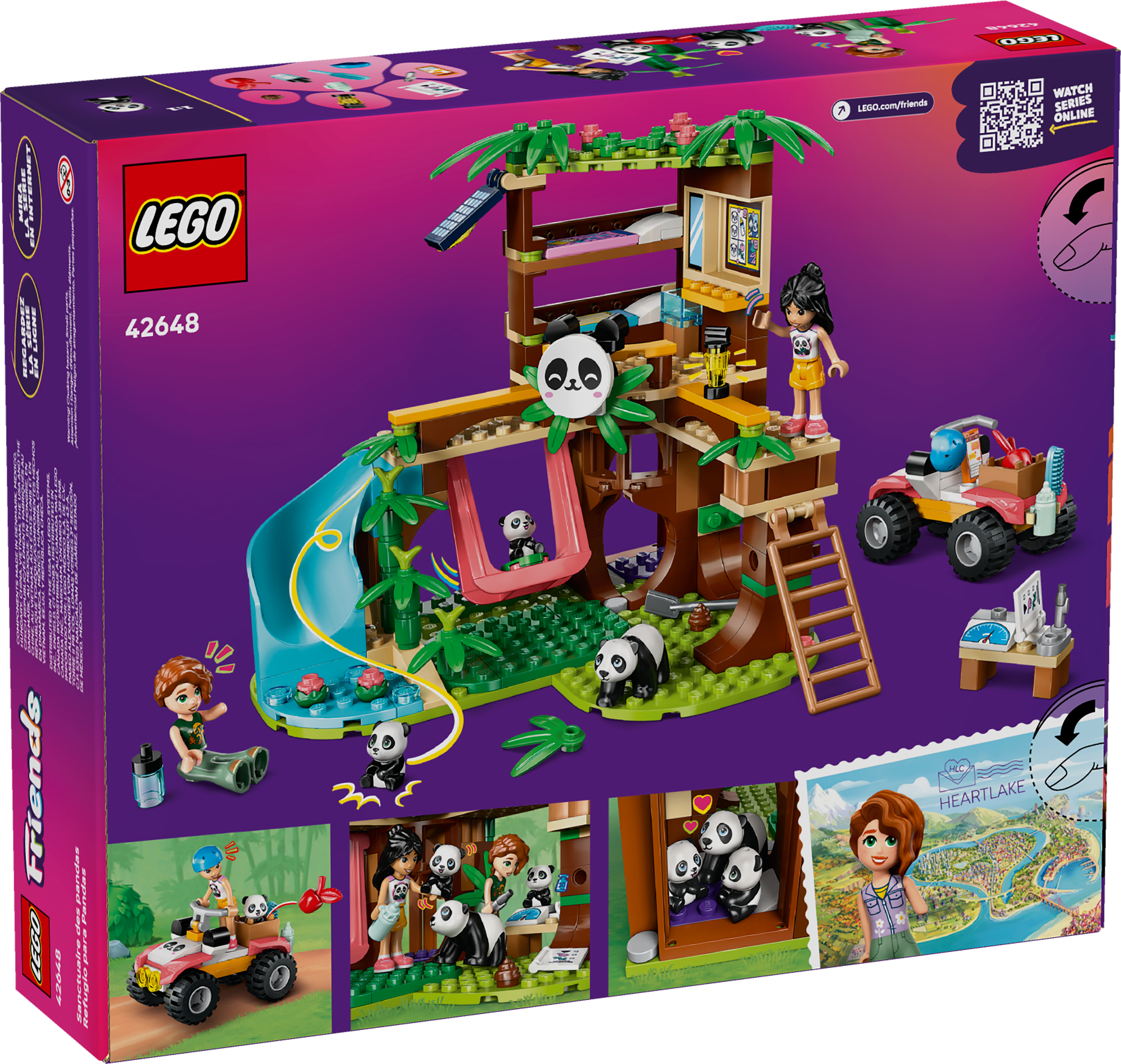 Discover a fun kids’ building set gift that’s packed with panda power! The LEGO® Friends Panda Sanctuary Animal Care (42648) set for girls, boys and animal-lovers aged 7 and up lets kids create their own panda rescue stories. The set comes with a buildable tree house and ATV, 2 minidoll characters and 3 panda figures to inspire creative pretend play. Get ready for paw-some playtimes as kids tell the story of Autumn and Liann, who are helping out at the panda sanctuary. The set comes with lots of accessories, including a weighing scale and grooming tools. This set is also full of humorous details – let the pandas whoosh down the slide into the water or enjoy a ride on the swing. The ATV is perfect for transporting the pandas’ favorite bamboo snacks. When the pandas take a nap in their cave, the friends climb the ladder into the tree house where there’s a desk and 2 beds. This set lets kids explore friendship themes while boosting their social development through nurture play.