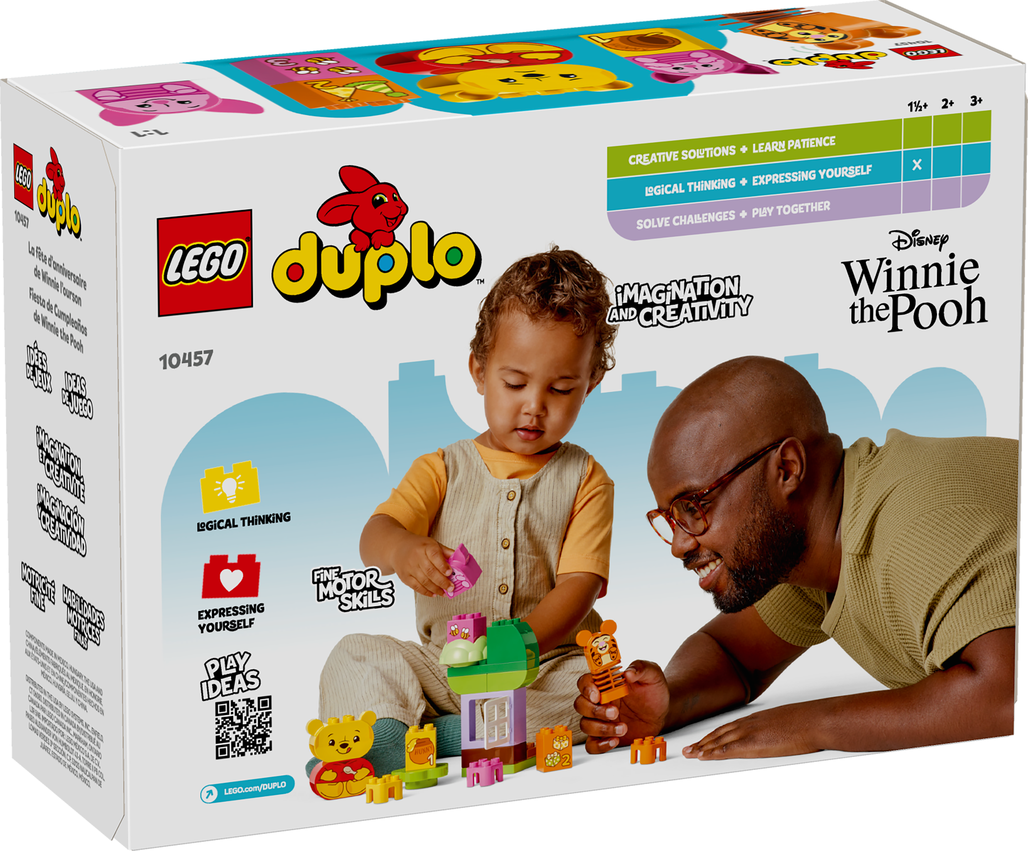 Parents and toddlers enjoy creative playtimes and learn through play with LEGO® DUPLO® ǀ Disney Winnie the Pooh’s Birthday Party (10457) building set. This colorful educational construction toy helps toddlers aged 18 months and up practice early skills while enjoying imaginative play.