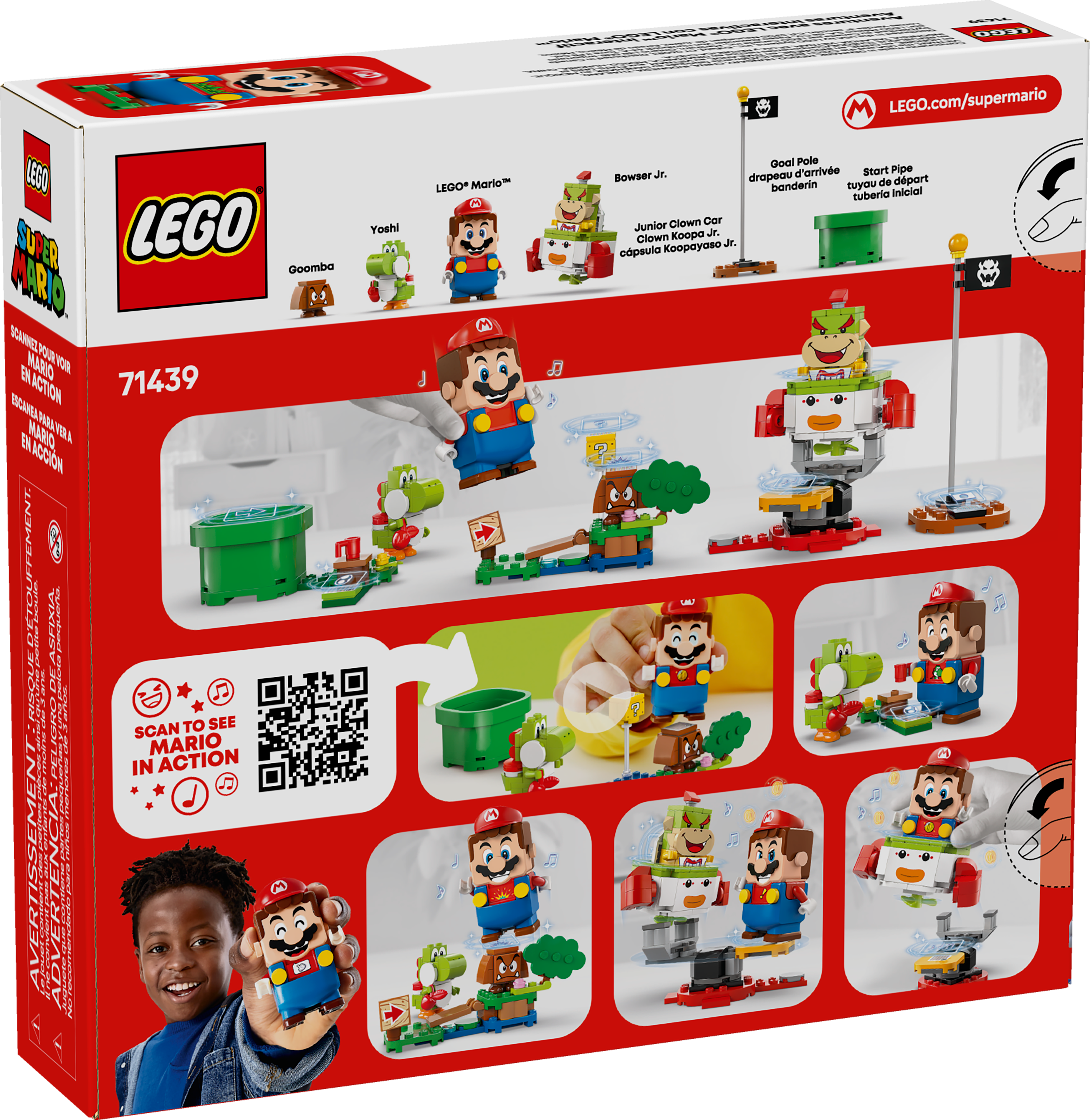 Give kids hours of adventures with interactive LEGO® Mario™, including a battle for Bowser Jr.’s Clown Car vehicle, with this LEGO® Super Mario™ toy playset (71439). An exciting Nintendo® gift for boys, girls and gamers aged 6 and up, the set features an interactive LEGO Mario figure, plus Bowser Jr., a Goomba and Yoshi toy figures, plus 3 environment builds. Travel from the Start Pipe to the Goal Pole, triggering digital reactions from LEGO Mario and collecting coins along the way. Greet Yoshi, defeat the Goomba, stomp on the ? Block, topple Bowser Jr. and then ride away in his Junior Clown Car.