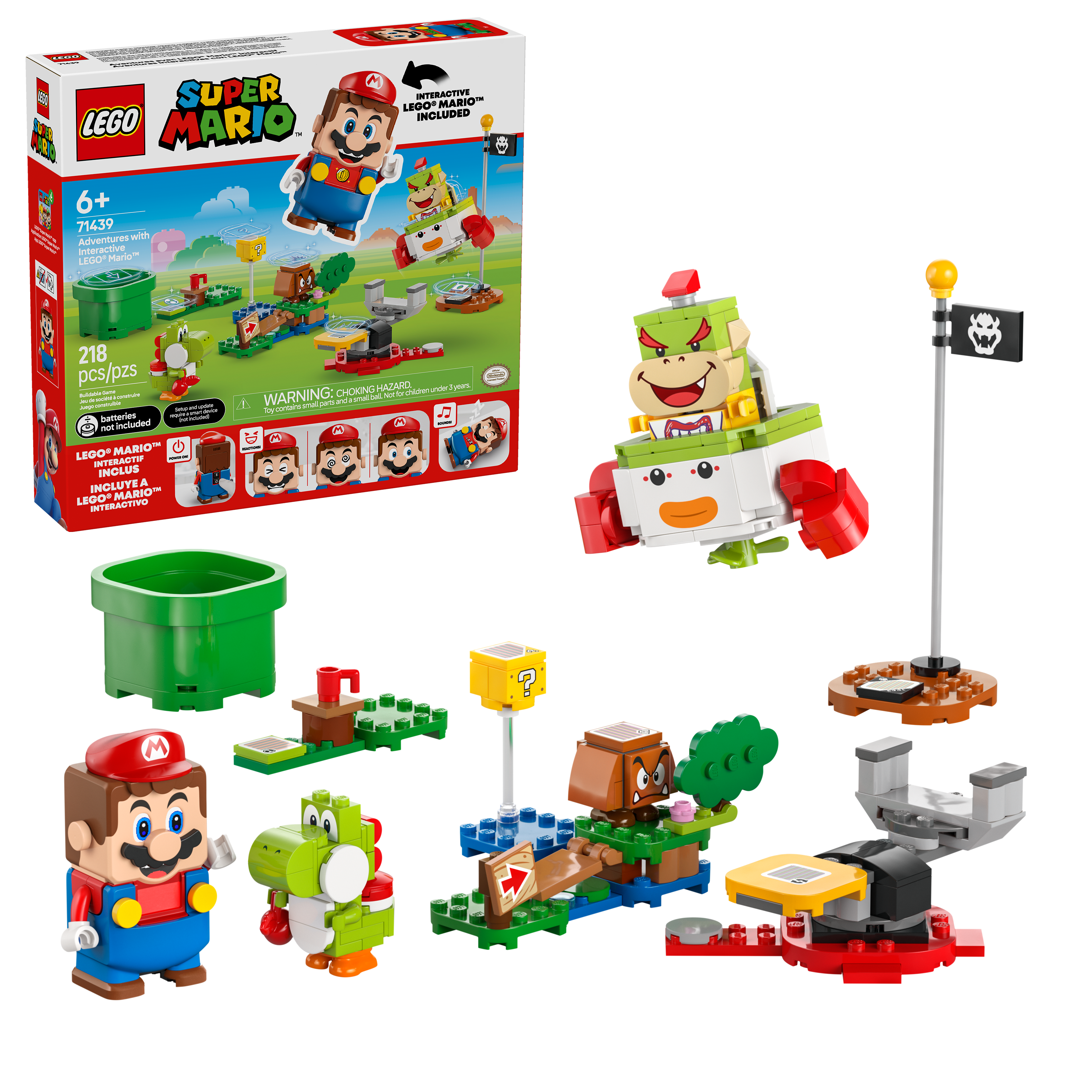 - Adventures with Interactive LEGO® Mario™ – Let kids build towards a battle against Bowser Jr. to take over his Junior Clown Car vehicle with this LEGO® Super Mario™ toy playset