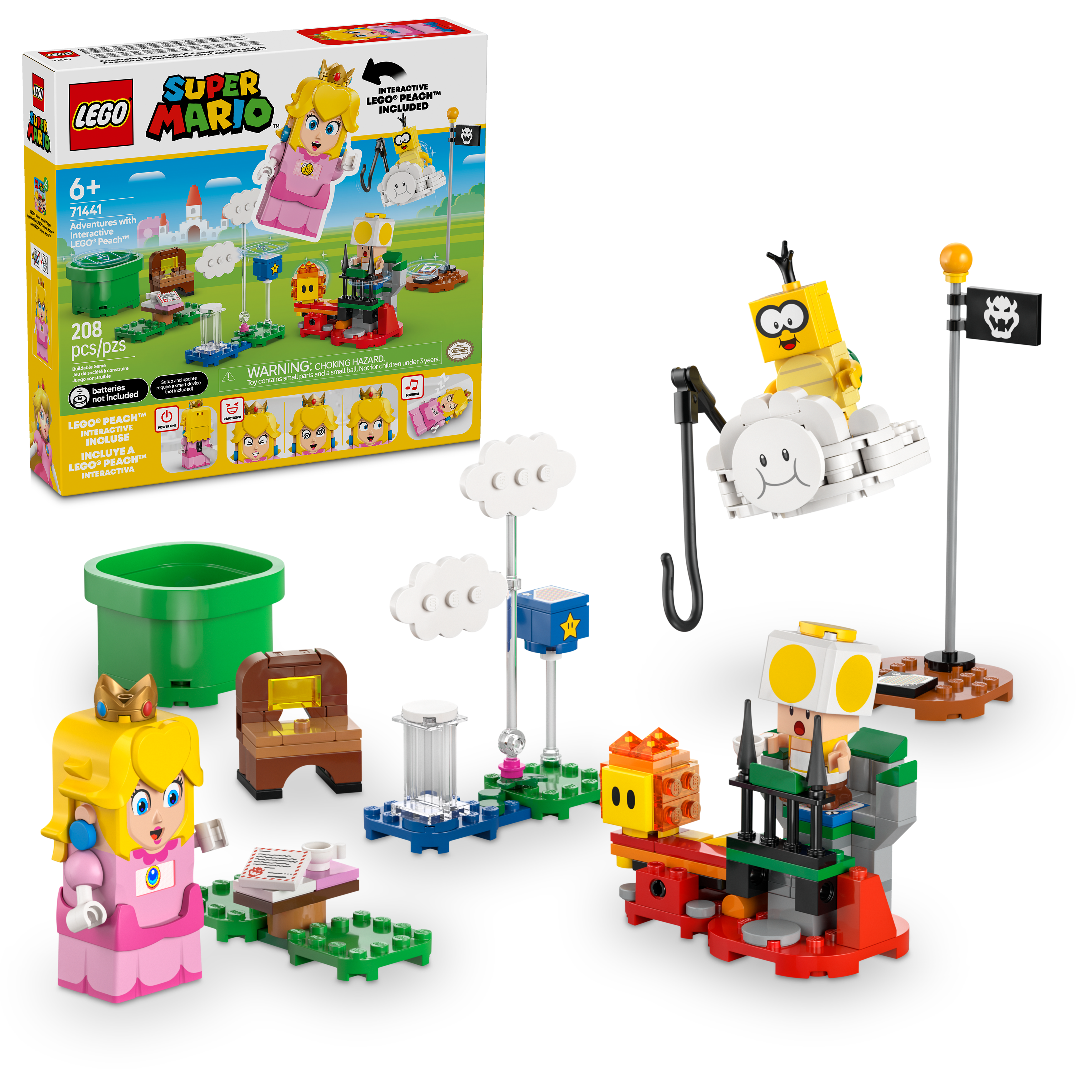 - Princess toy playset for fun adventures with Interactive LEGO® Peach™ – Join LEGO Peach for a picnic tea party and help her fly on Lakitu’s cloud to rescue the Yellow Toad