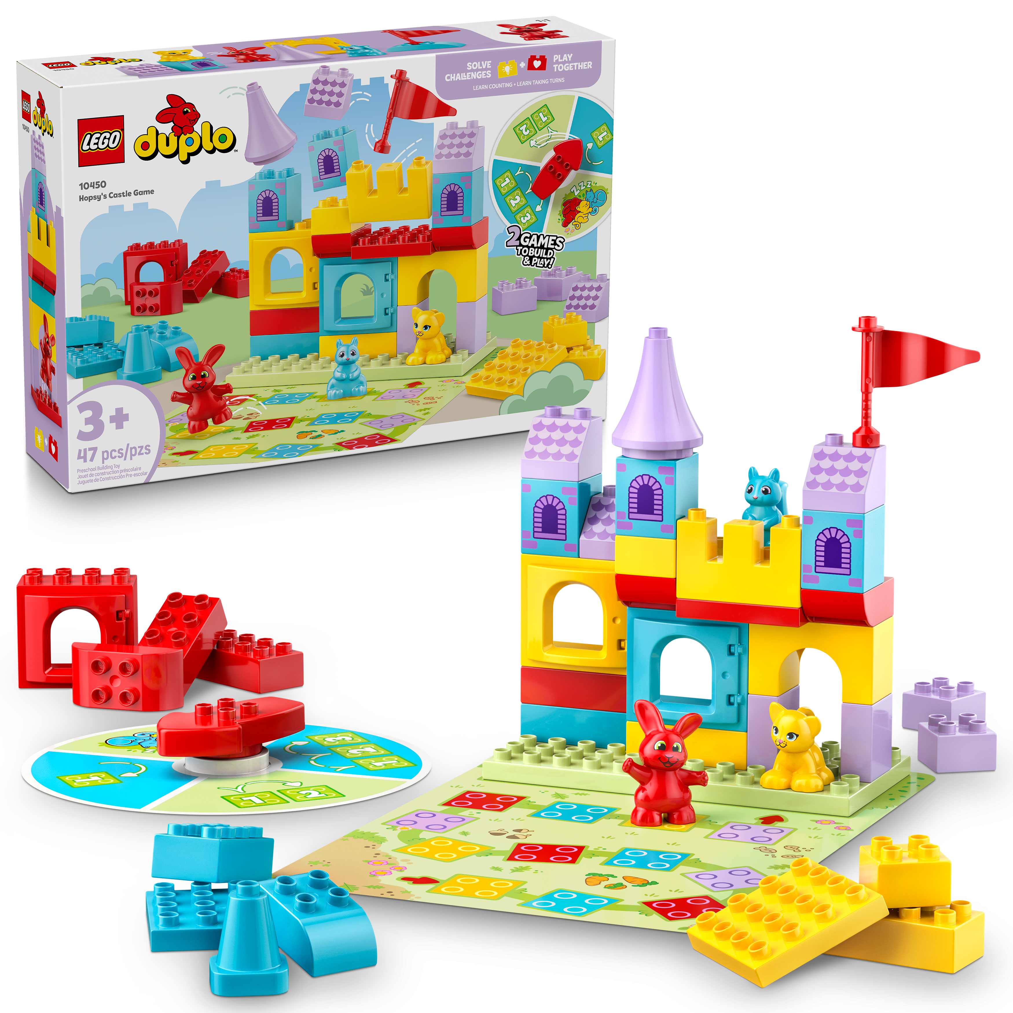 - Learn through play building toy – Enjoy fun-filled family activities with the LEGO® DUPLO® Hopsy’s Castle Game 2-in-1 board game preschool learning toy