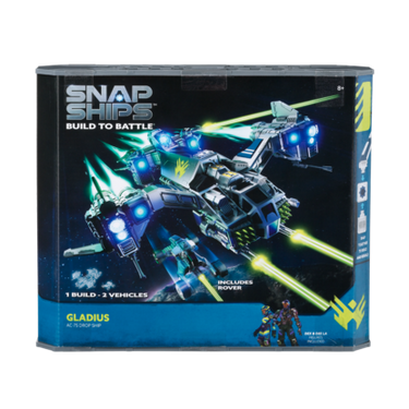 The Snap Ships set for Gladius includes instruction for two builds (ship and attack rover) that you assemble yourself and then engage in battle with real shooting weapon play! Gladius AC-75 Drop Ship is large and heavily armed so that it can clear landing zones and deploy a fast attack rover for ground missions. Gladius is piloted by Commander Dex and the spunky Dee La, two of the Forge’s best pilots. Battle gets really interesting when you add the mysterious UJU tech piece that’s included!