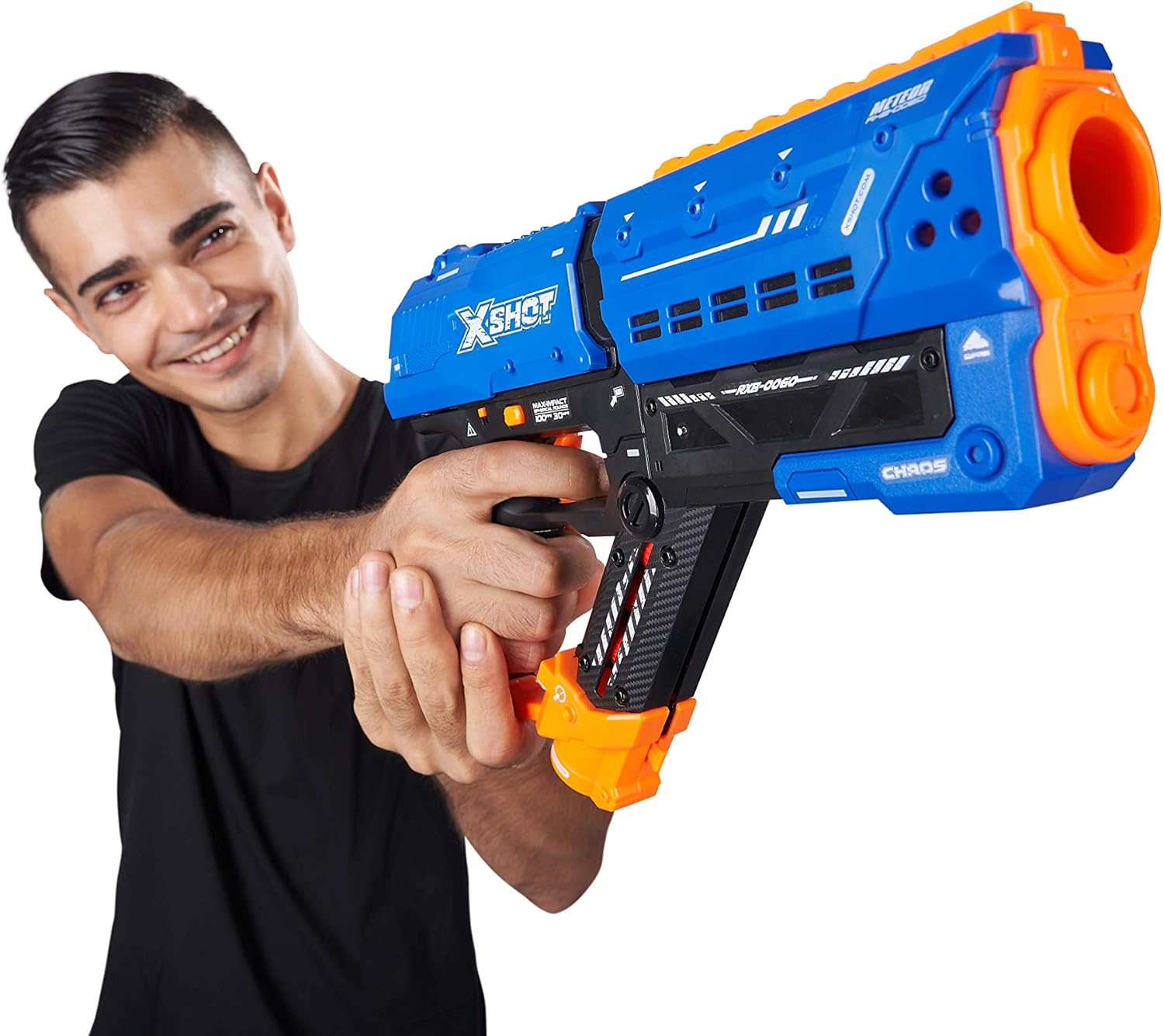 - SUPERIOR FIRE POWER: X-Shot Chaos round blasters deliver maximum performance in the round blaster category.