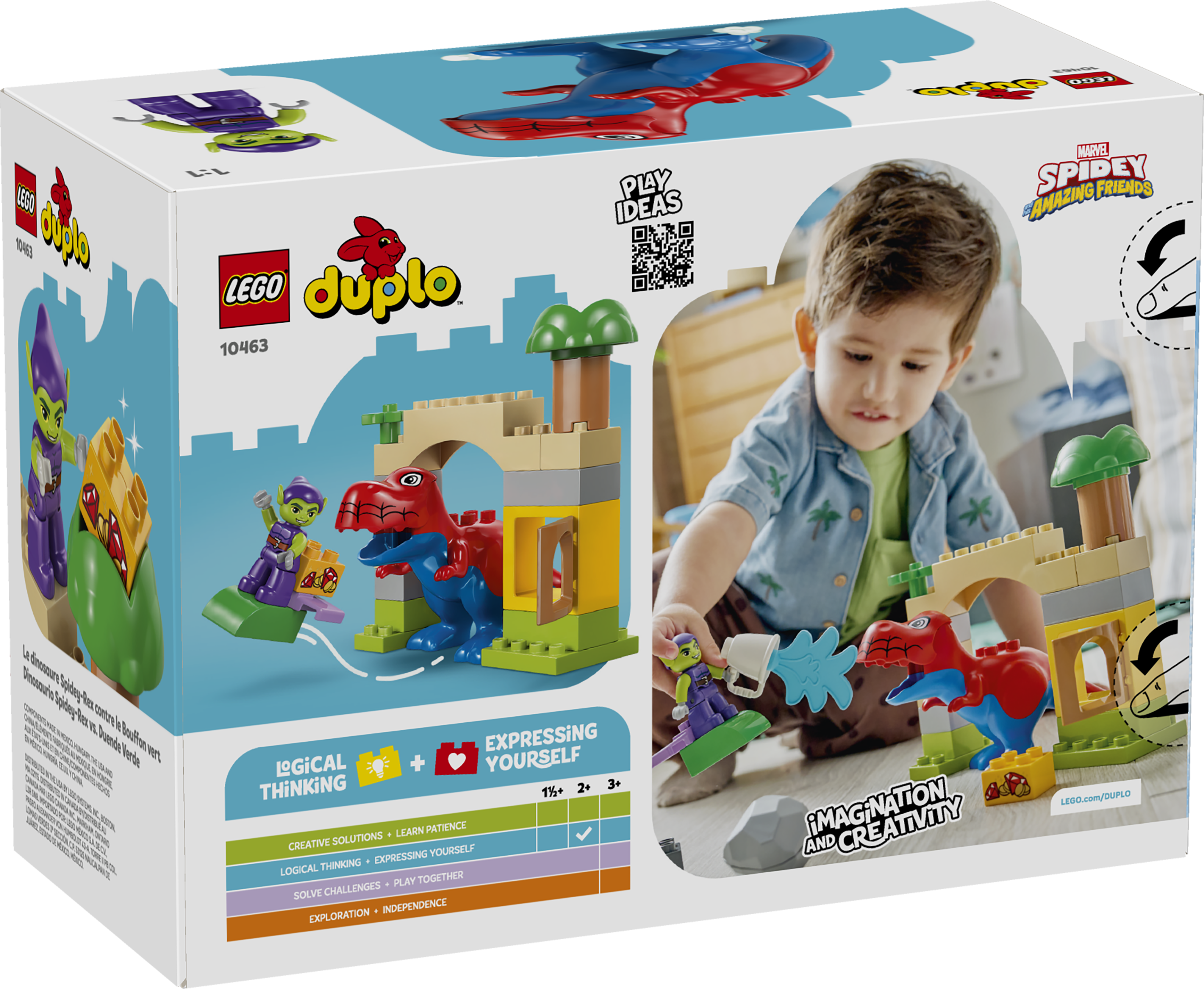 - SUPER HERO TOY – Toddlers ages 2 and up can enjoy imaginative play with the T. rex version of their favorite webslinger in this Dinosaur Spidey-Rex vs. Green Goblin (10463) building toy