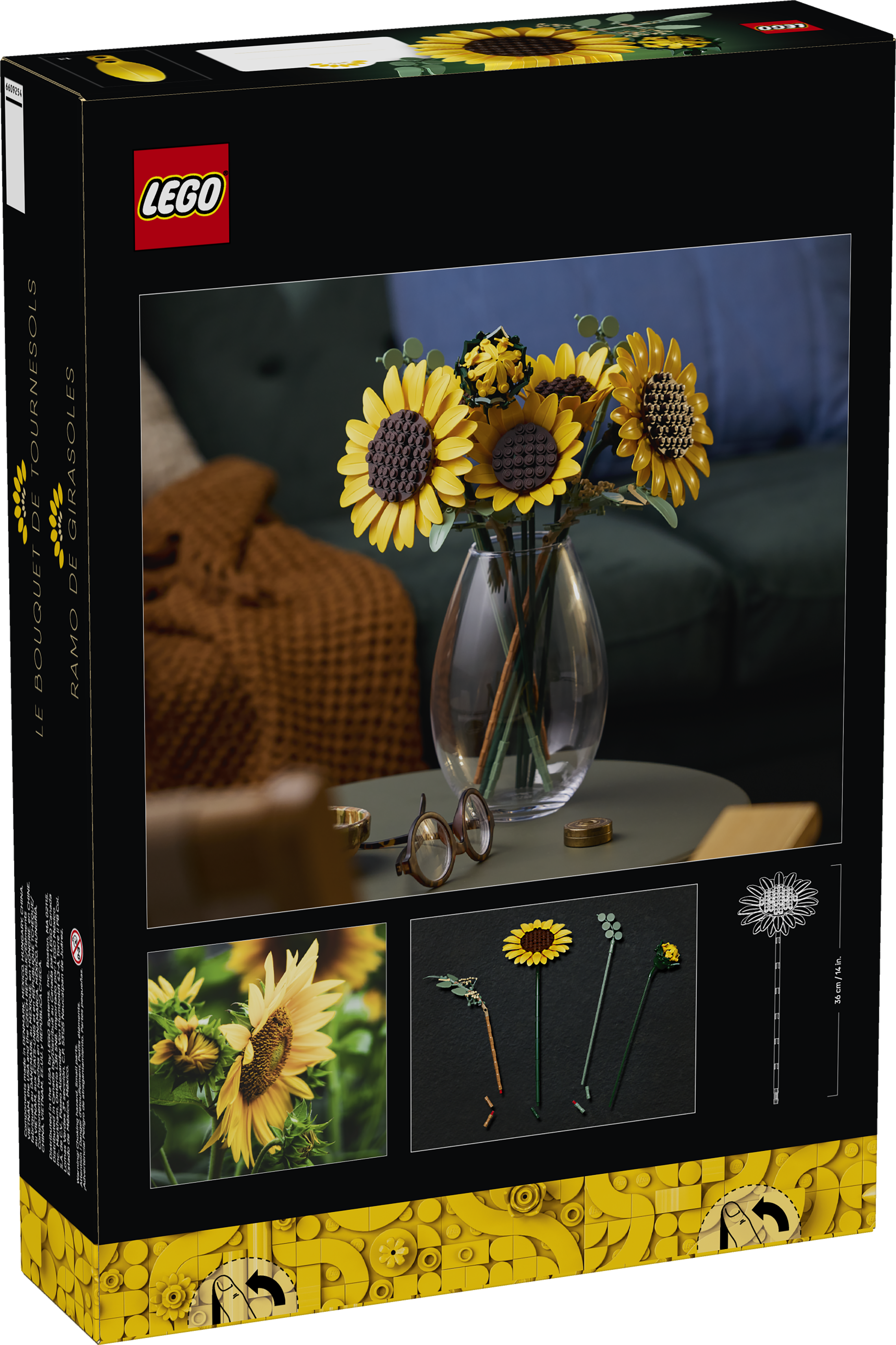 • LEGO® SUNFLOWERS – The bouquet includes 6 sunflowers in various stages: 1 sunflower bud, 3 sunflowers beginning to bloom and 2 big fully opened sunflowers