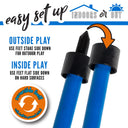 • REVERSIBLE STAKES mean that you can play on a soft outdoor surface or smooth indoor surfaces-simply reverse the stakes and you are ready to play!