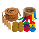 • PREMIUM QUALITY: This is the official set (because we are the inventors)! The rope rings contain an inner iron core to keep rigid. The circular sandbags are double stitched with a thick outer canvas and a soft inner liner. The wooden pylons are equipped with spikes for any terrain but can still balance perfectly on harder surfaces. All this fits inside a custom-shaped, vegan-leather carrying case. Not to mention the official sport branding.