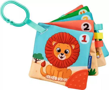 Enjoy early counting and colour fun with My First Book: Numbers and Colours. Each of the five double-sided pages in this soft book includes multisensory features to discover and explore. A soft silicone teething edge is ideal for soothing sore gums and baby will love to see reflections in the little mirror. The ribbons on the side of the book will be fun for baby to reach for and grasp while the high-contrast colours throughout will keep baby entertained. The handy clip makes it easy to take playtime with the My First Book: Numbers and Colours on the go too.