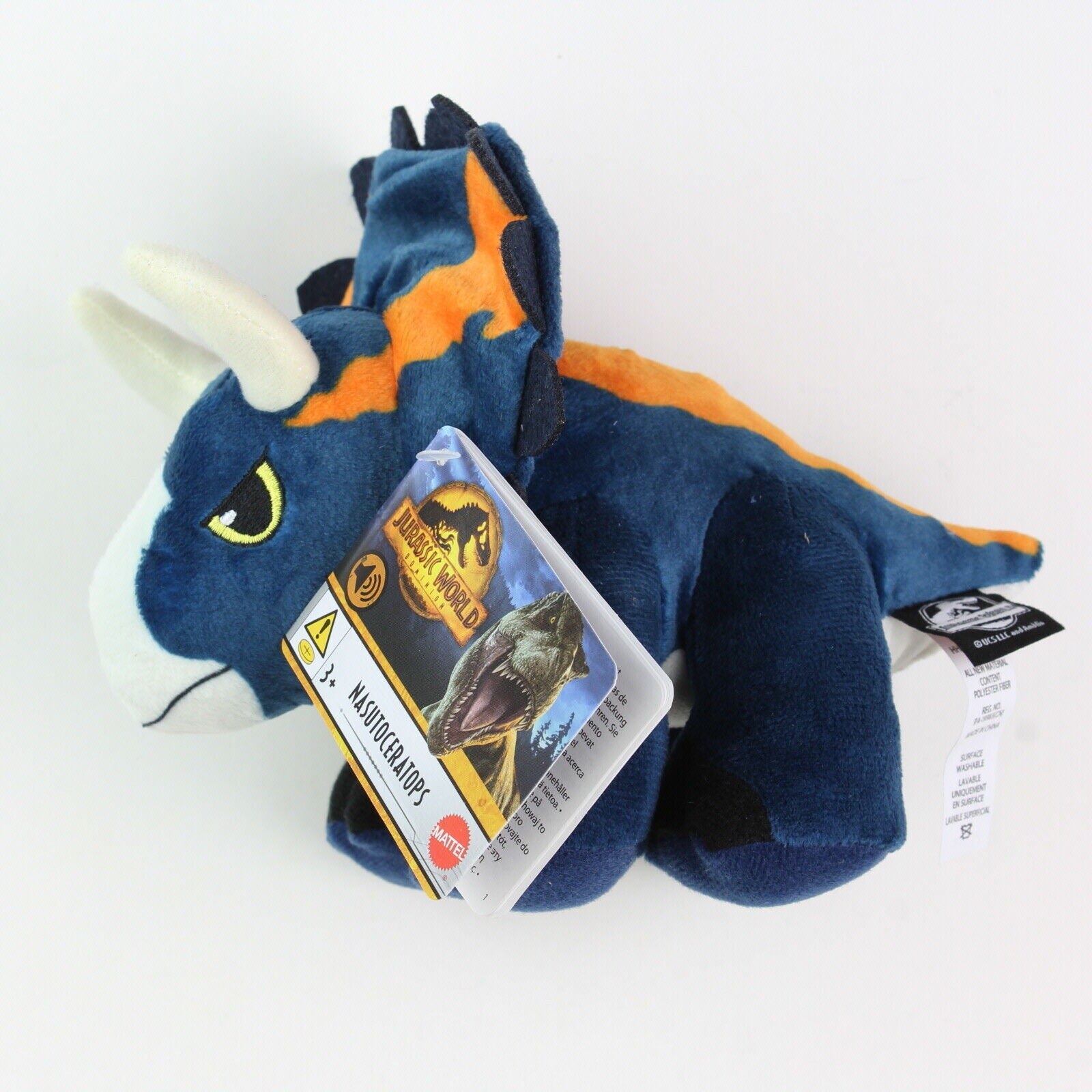 Get ready for thrilling action and adventure with Jurassic World: Dominion Small Sounds Plush Atrociraptor or Nasutoceratops!