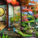 Picture yourself in these exotic surroundings with the soothing sounds of flowing water and a spicy floral fragrance filling your senses. You notice the koi pond and placid peacocks as you make your way from the house. Taking the roji (dewy path) to the garden pavilion or tea house (cha-shitsu) starts your journey of breaking communication from the outer world in this Zen practice dating back to the 16th century. Let the stress melt away as you piece together this vibrant, relaxing puzzle!