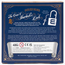 Dr. Watson is missing! Moriarty, Sherlock Holmes’ nefarious archnemesis, has left an elaborate trail of clues, but the clock is ticking… Holmes finds himself at the end of the trail only to be stumped by an intricate lock. The doors will soon slam shut so he must solve the puzzle quickly! Can you help!? Use the key to move blocks in the right sequence to release the lock and rescue Watson. Includes wooden lock puzzle, metal key, and solution.