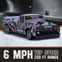 Hoonigan Hoonitruck RC Trucks are available in 1:16 and 1:32 scale models. They achieve an exhilarating top speed of 6 mph (or 4 mph for 1:32), ensuring dynamic remote-controlled experiences, coupled with an impressive 150 ft. range (or 100 ft. for 1:32) for versatile and extended play.