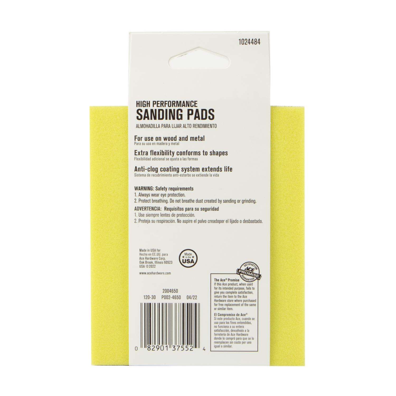 Ace High Performance Sanding Pad. Sanding Pads are the right choice. The thinner, more flexible designs make these pads easier to use in tight spaces or for curves and contours. General purpose sanding on wood, metal, drywall, fiberglass and painted surfaces.