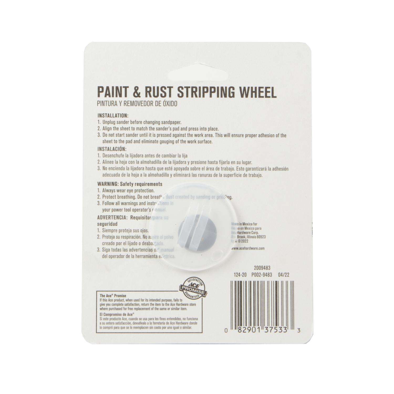 Ace 4-1/2" angle grinder paint and rust stripper 1pk. Heavy duty mesh design allows for quick removal of paint or rust without damaging the sub-surface.