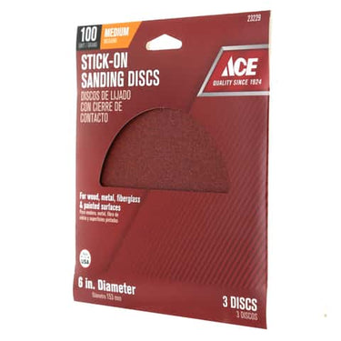 Ace 6 in. Aluminum Oxide Adhesive Sanding Disc 100 Grit Medium 3 pk