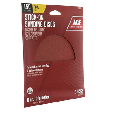 Ace 6 in. Aluminum Oxide Adhesive Sanding Disc 150 Grit Fine 3 pk