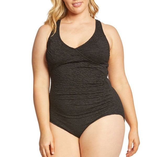 Women's Penbrooke Mock Krinkle One Piece Swimsuit (Black) Size 18