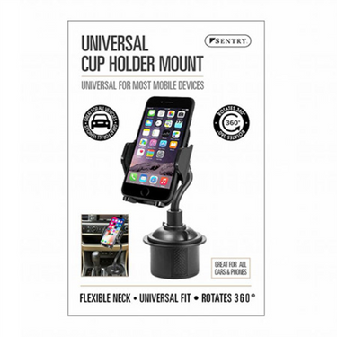 The most important part of any trip is getting there safely. With this Sentry® Universal Cup Holder Mount navigation is easily in sight! Locking design ensures a secure fit for most cup holders while the flexible arm allows for 360-degree rotation. Fit most phones up to 6 inches. Quick and easy to setup. Sold in increments of 6 mounts Peggable Quick and easy set-up Fits phones up to 6 inches Flexible arm Rotates 360 degrees.