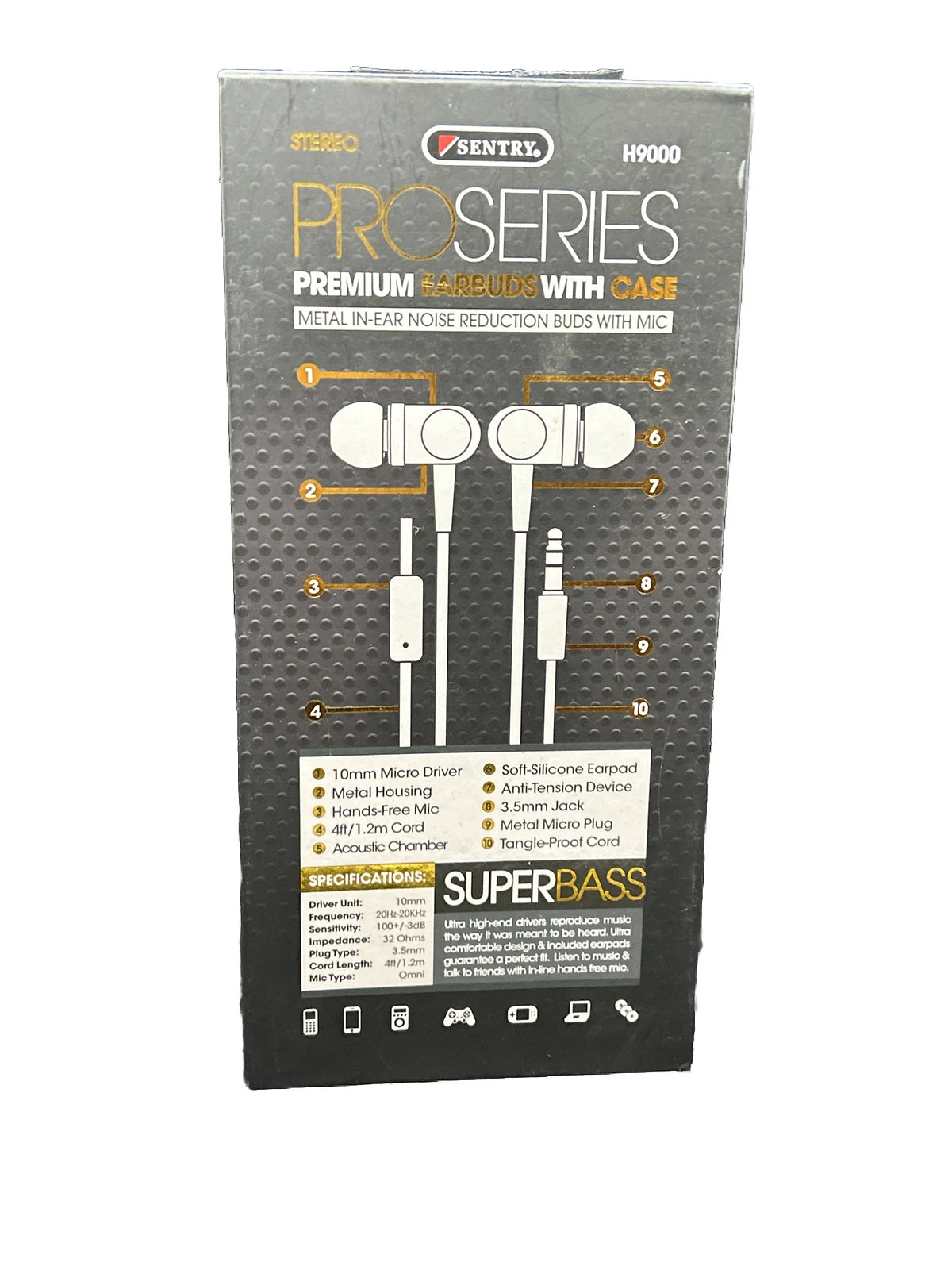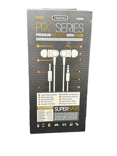 Experience superior sound quality with the Sentry MetalPro Premium Earbuds w/Case H9000. The earbuds come in a sleek black color, with a form factor that fits snugly in your ears. These earbuds are perfect for listening to music or even taking calls on-the-go with their built-in on/off switch, call functions, and hands-free mic.