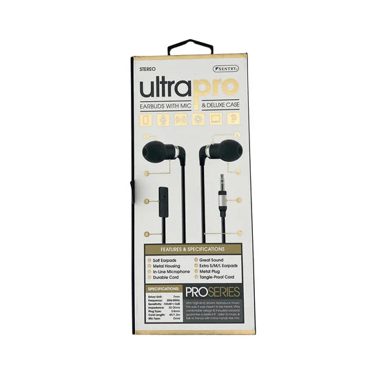 Brand new Ultra Pro Metal Ear Buds with In-Line Mic, Black, Great for use with smartphones, cellphones, iPod, iPad, iPhone, MP3 player, tablets, PCs and laptops, DVD players, gaming (PS4, Vita) and more!